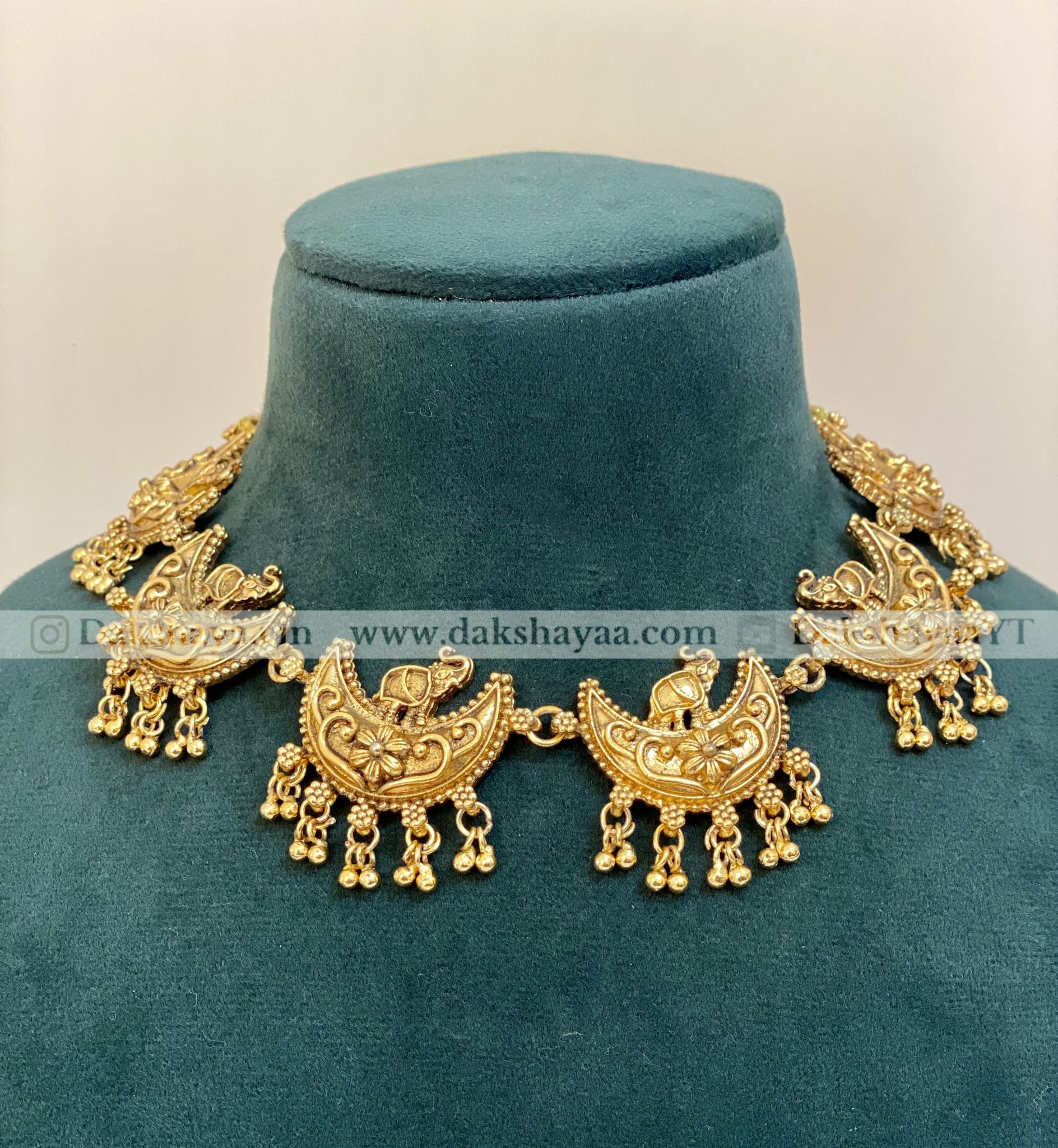 Antique Gold Finish Crescent Motif Choker Necklace Set