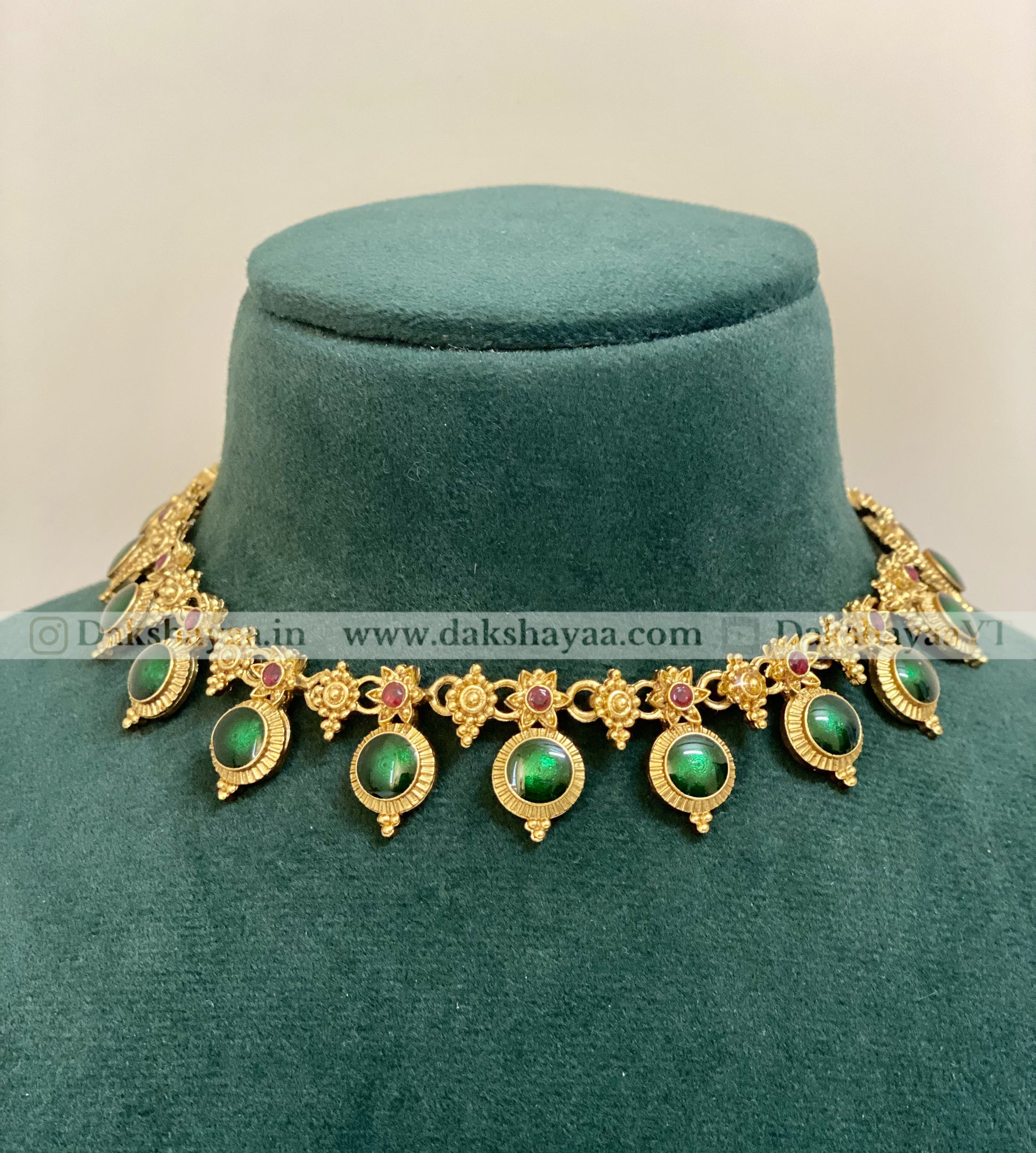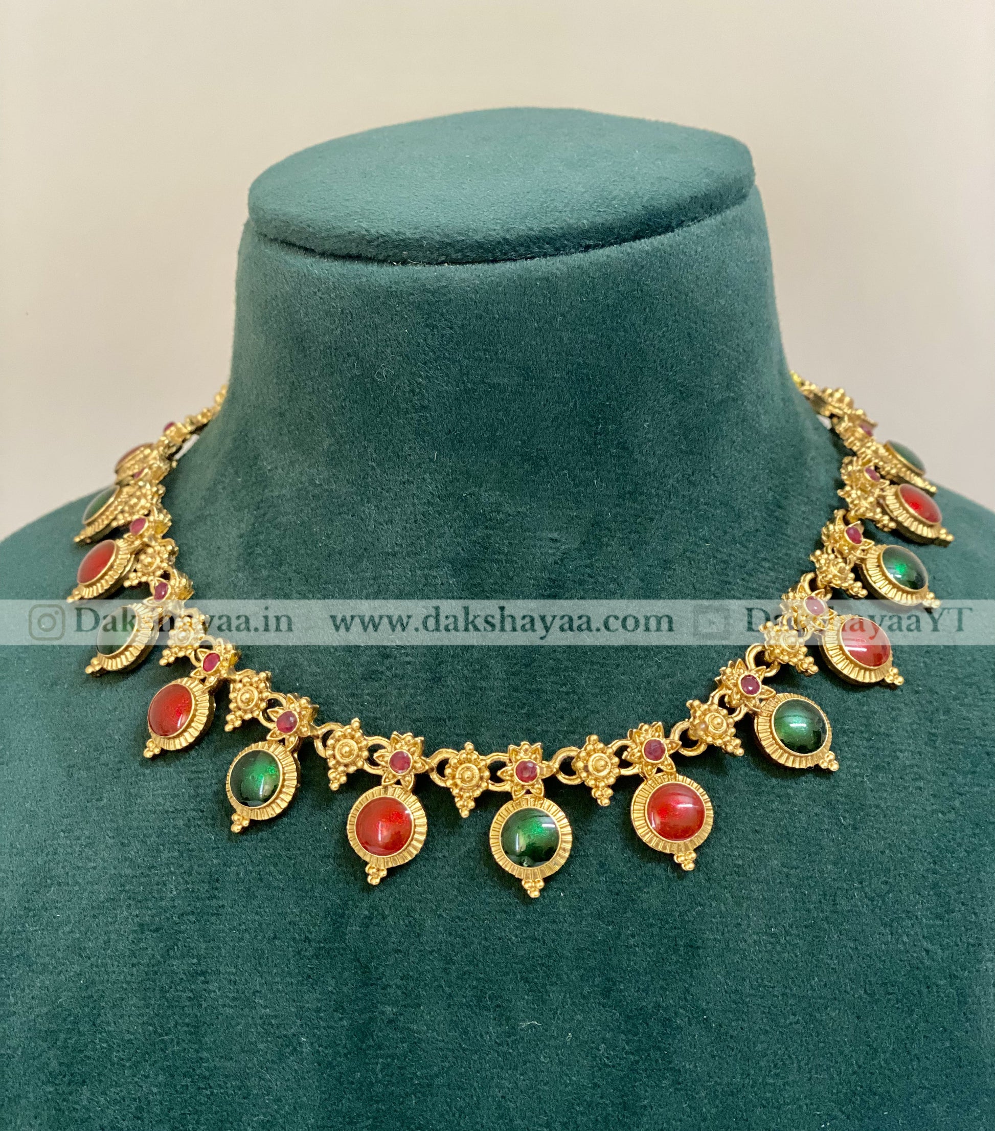 Material: High-quality brass alloy with antique gold finish, rich imitation stones in green, red, or green & red combination, complemented by beaded detailing